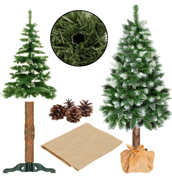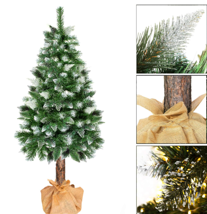 Podstawa choinki wykonana jest z prawdziwego drewna, które wprowadza do wnętrza autentyczny zapach lasu i nadaje jej niepowtarzalny charakter.